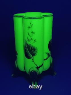 Gold gilding to the white with white enamel acanthus leaves. Has some wear to the gilding and enamel, but otherwise good condition. Measures approximately 3 1/8 inches wide x 5 3/4 inches tall.