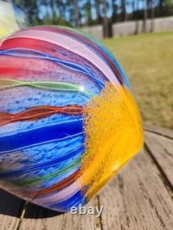 Murano Art Glass Vase Cobalt Blue With Green Waves Swirls Hand Blown Stunning.