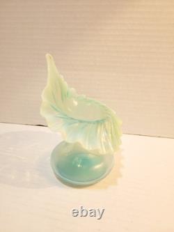 Most likely circa late 1890s. Good vintage condition with No chips, cracks or visible flaws. Size small approximately 4.75 inch tall x 4 inch wide (5 inch at tallest point) A few tiny air bubbles from manufacturing & could possibly use a better cleaning/ soaking but I don't see any flaws. In normal daylight the bottom looks blue & the top looks sort of light green blue with opalescent at edges of ruffle.