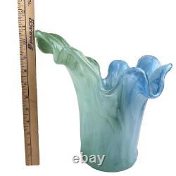Enhance your collection or home décor with this stunning vintage Murano glass vase. Hand-blown in Italy, this piece features a vibrant blue & green swirl pattern with an elegant ruffled edge, showcasing the craftsmanship that makes Murano glass world-renowned.
